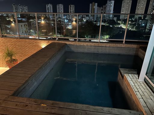 O apartamento Dúplex - tem 162,35m² com 3 suítes, 1 home office, 2 depósitos, 1 lavabo, 2 varandas, 1 terraço com piscina e churrasqueira privativa, sala ampliada, cozinha reformada, área de serviço e 2 vagas de garagem.