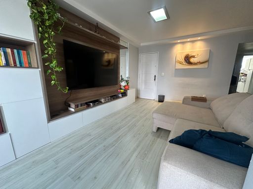 Totalmente mobiliado, o apartamento oferece sala ampla e aconchegante, perfeita para receber amigos e familiares, além de cozinha funcional e bem equipada. Dispõe ainda de 1 vaga de garagem, garantindo comodidade e segurança.