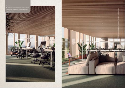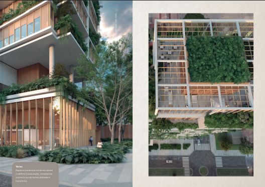 - Gastronomia e Conveniência: Um segundo restaurante com um generoso terraço no 3º pavimento , além de um café no lobby e lojas no térreo para conectar o edifício à cidade.