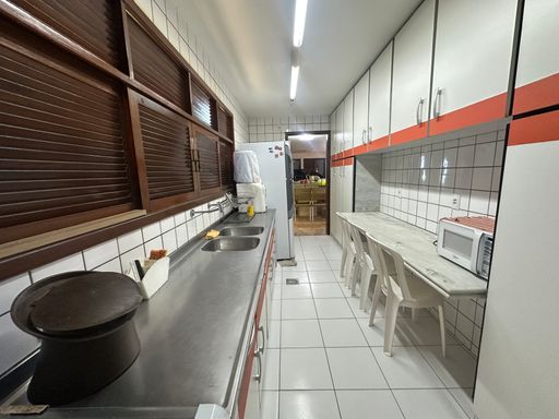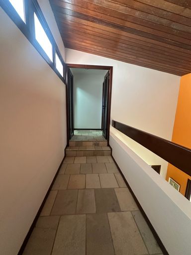 Sala para dois ambientes grandes, com detalhes de iluminação e perfis em ipê, Cozinha completa, com despensa, varanda, WC social, Dependência de empregada, quarto-depósito, lavanderia espaçosa, Garagem para 4 veículos